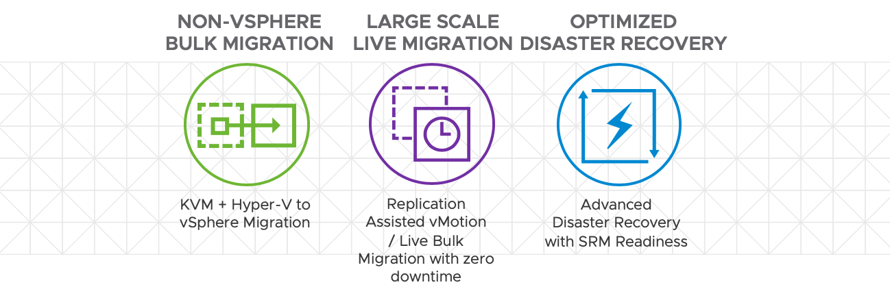 This new migration option combines the scalability benefits of bulk migration (parallelism, scheduling, resiliency) with the vMotion capability to migrate with no downtime.