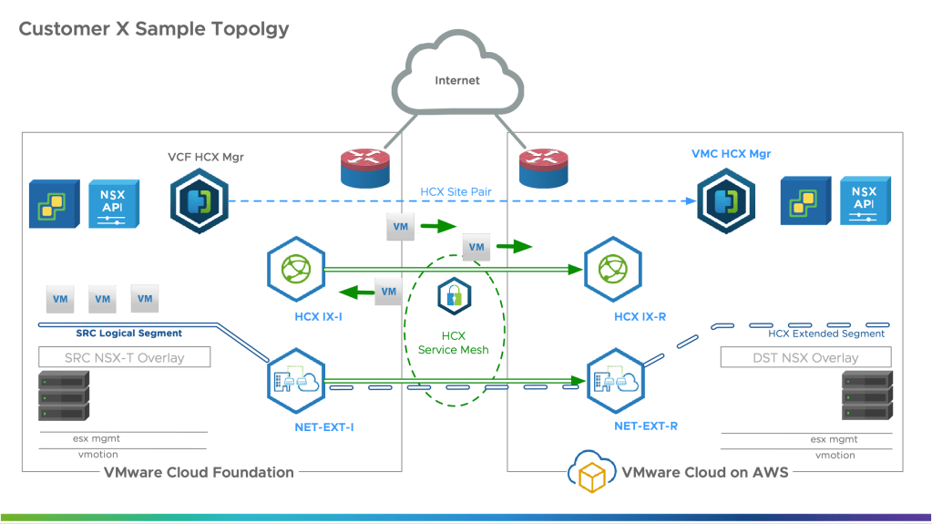 An example of this is customer X who has used HCX to connect his vintage vSphere 5.1 AMD cluster to a Intel based VCF architecture. HCX decomplicates processor and cluster networking compatibility between 5.1 and VCF. The identity domains remain isolated. The source workloads are fully evacuated with low to no downtime and efficiently with HCX in-line data reduction. Net-net… the infrastructure is modernized efficiently. Virtual hardware is upgraded as part of the migration. The vSphere 5.5’s againg infrastructure can be removed from the books. - The August 30th addition of SRC environment support for NSX-T allows hybridity and mobility services between NSX-T installations.