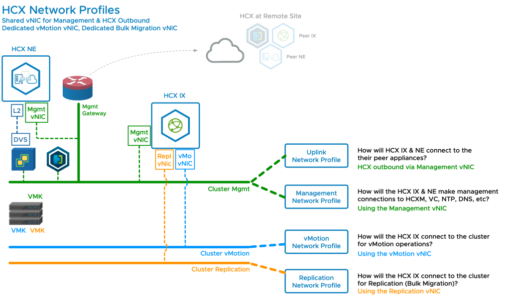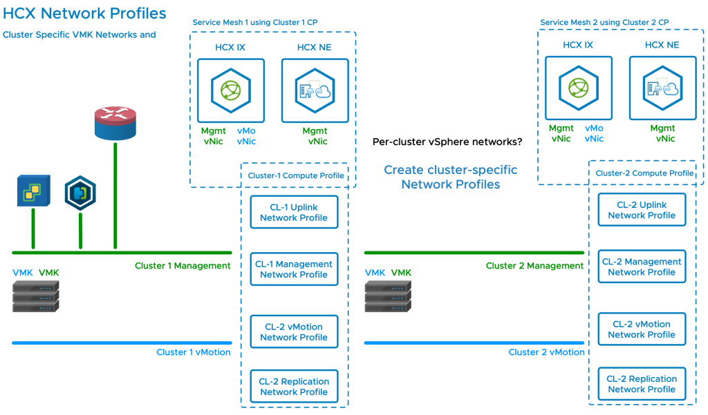 HCX uses Network Profiles (NP) to abstract service mesh network configurations, and to define HCX’s participation in those NP networks in a way that is flexible and scalable.