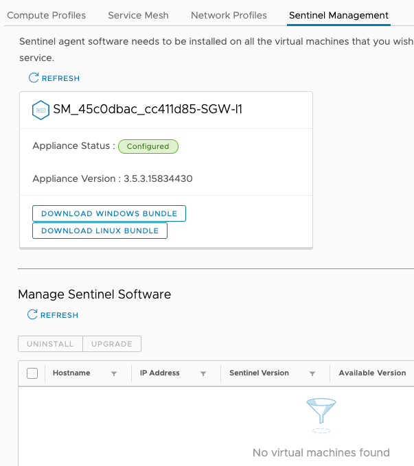 Hyper-V or KVM virtual machine running the Sentinel Agent will populate the Manage Sentinel Software pane. To upgrade the sentinel agents, you select each VM/agent and click upgrade. As a pre-requisite – the Service Mesh OSAM components (SGW/SDR) should be upgraded first.