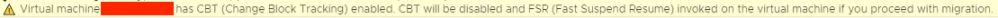 The current versions of HCX, the CBT scenario, when CBT is detected, the HCX migration interface gives this warning: