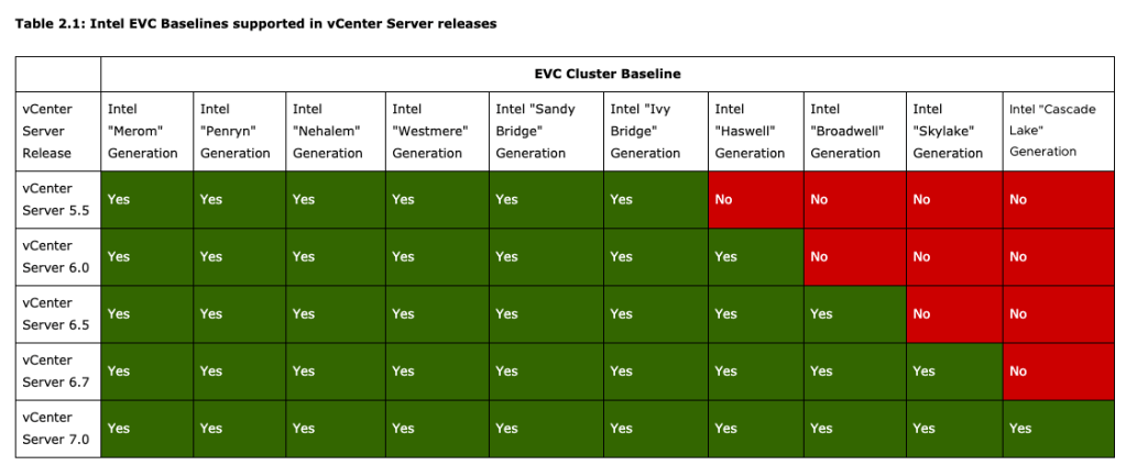 Lets use as an example, a migration from a vSphere 5.5 environment that has Ivy Bridge clusters to a vSphere 6.7 environment with Skylake clusters.