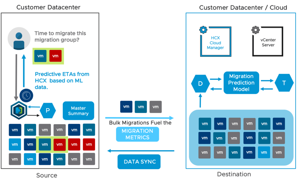 The predictor modeling is based on data collected from real migrations. Multiple data points (like the rate of checksum operations, datastore types, transfer rates, and parallel operations) are evaluated when HCX is building out the prediction model. Some things to know:
