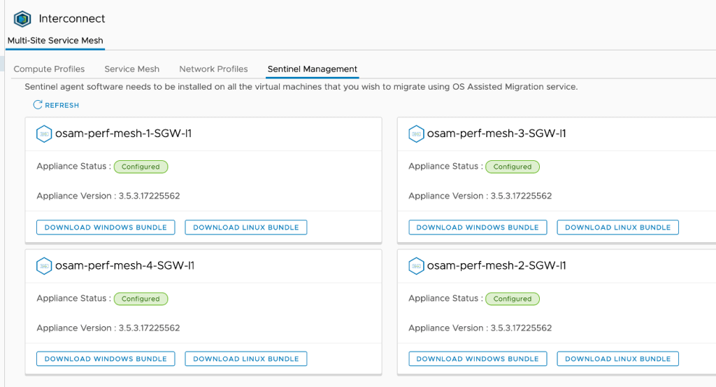 When the HCX OSAM service is enabled in the service mesh, the OSAM (Sentinel) agent can be downloaded from the HCX UI (there is Windows and Linux version of that file: