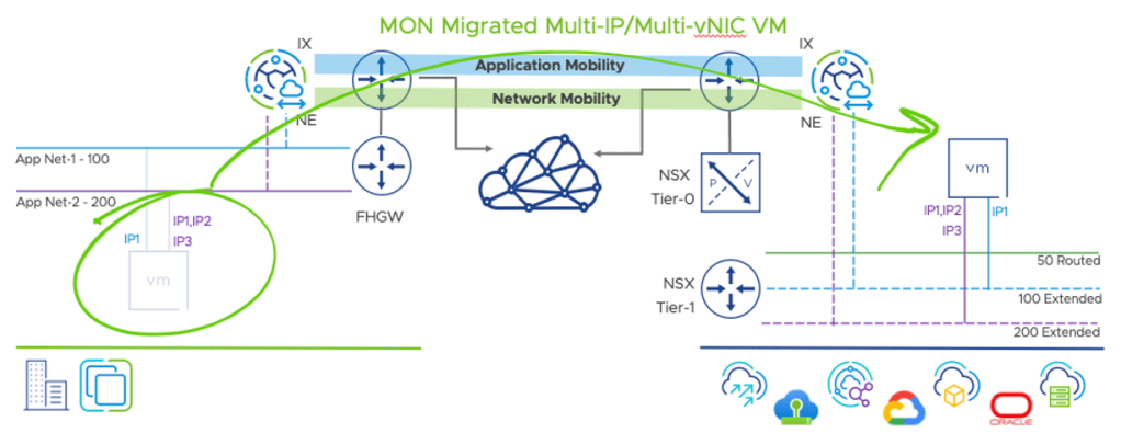 Applications with multiple network interfaces can leverage east-west MON routing optimization, multiple IPs are displayed in the MON interface.