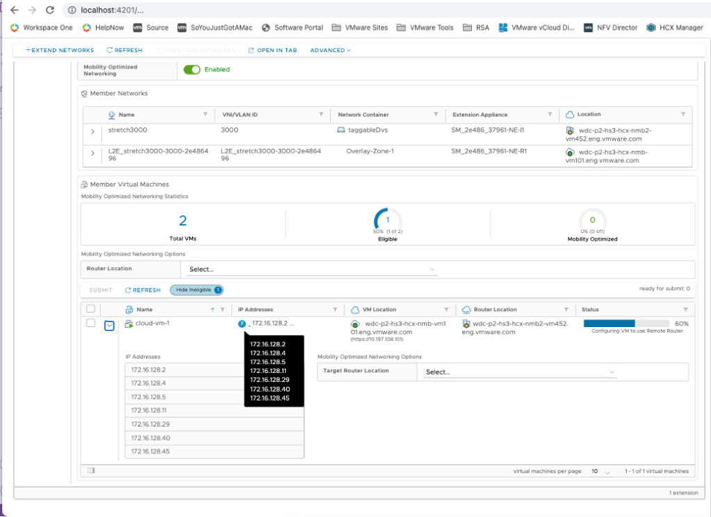 - Mobility Optimized Networking now displays every IP address on the extended subnet. e.g . Link-local 169.254/16 assigments would not be displayed.