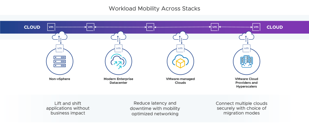 Global enterprises and institutions have successfully migrated hundreds of thousands of virtual machines within their data centers and into the public cloud. HCX enables cloud consumption by providing reliable live application mobility for many use cases, and provides the workload connectivity technologies required to unshackle the workloads from aging infrastructure while minimizing investments in those sites that will ultimately be evacuated.
