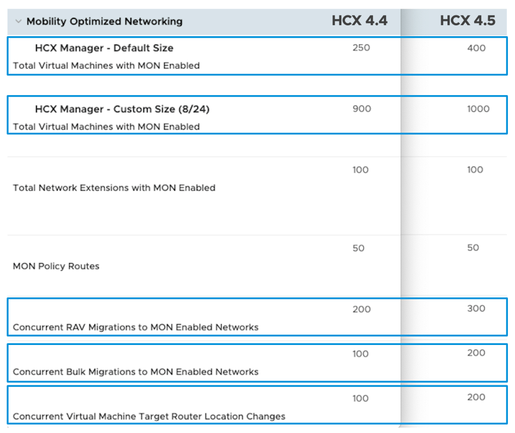 Several Mobility Optimized Networking operational maximums are increased in 4.5.