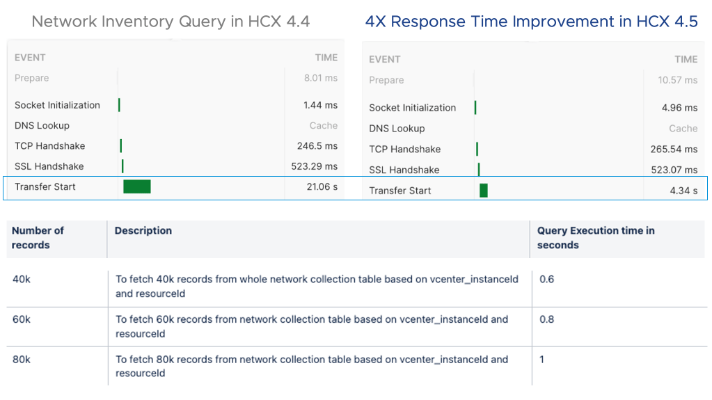 HCX 4.5 improves the user experience when working with large network inventories. Response time reduction when loading Virtual Machine networks during HCX Migration, Network Extension and Network Profile Configuration.