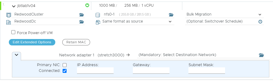 If server re-IP is a mandated strategy, use HCX Bulk Migration’s Guest Customization options to re-IP workloads in flight. You can also fix DNS and run additional customizations via scripted OS commands as automatic post-migration steps.