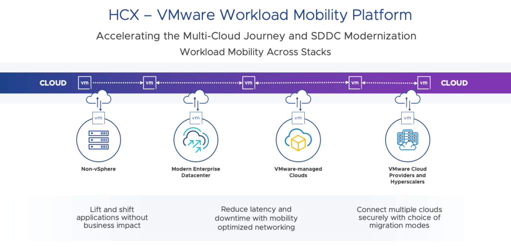 HCX is a workload mobility platform that brings techniques and technologies to accomplish data center evacuation, cloud adoption, hardware lifecycle-based lift & shifts and even non-vSphere workload conversions with the highest degree of compatibility while abstracting away many of the complexities in these sorts of projects.