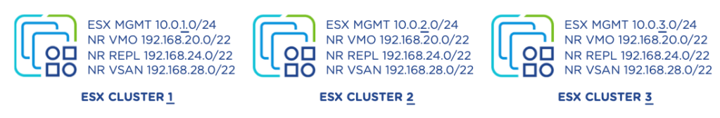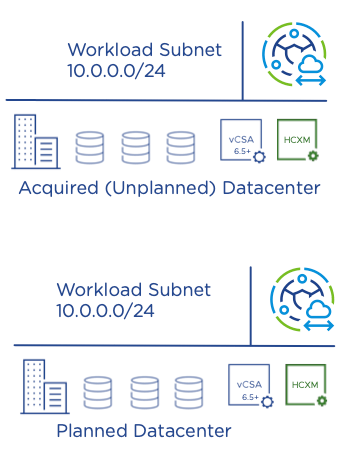 In the A1 scenario, the subnet design uses planned overlapping space and contains the vMotion network. In the B1 & B2 scenarios, you’ve inherited subnets during M&A or you are using a provider that does not delegate control of this space, thus potentially causing overlapping infra addressing.