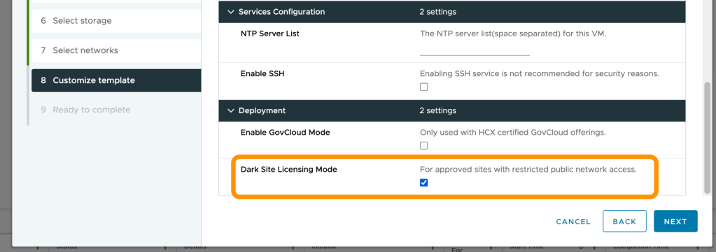 - In new deployment air-gap is a checkbox during the HCX Manager OVA deployment in the vCenter Server. You’ll see it in the Deploy OVF Template.